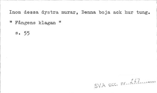 //// Inom dessa dystra murar, Denna boja ack hur tung. " Fångens klagan " //// s. 55 //// SVA ccc. nr...7.1, .. ////