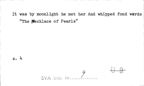 //// It vas by moonlight he met her And whipped fond words "The plecklace of Pearls" //// s. b //// <k -U—9" //// SVA ccc. nr.../... ////