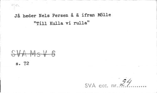 //// Jå heder Nels Persen å ä ifrån Mölle "Till Kulla vi rulla" //// S-VA Mg V 6 //// s. 72 //// SVA cxc. nr.åf... ////