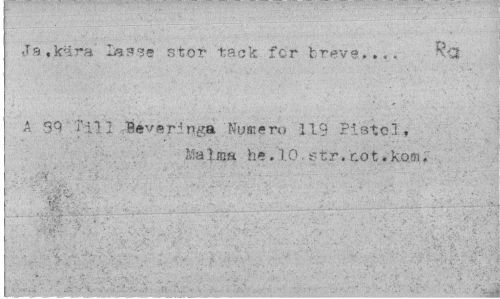 //// .. _.. .. _ ..-.¦¦ - . ,-, ¦¦ •. • ? . . ¦ . -- . , Ja »kära las se stor tack. fcr breve,... Ka //// A; 39 fil, 2 leveringa Numero 119 Pistol, //// Malm» he.10.str.not.kom. //// i //// ~ ' - - - ...-- - r - " ~---~--- -—¦<••'•- - ^ . //// ,. • ' V"'" : .V'-' ¦ •¦i-V;. ////