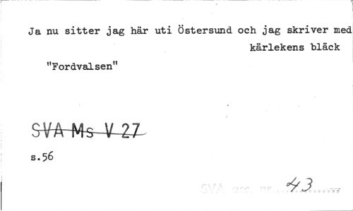 //// Ja nu sitter jag här uti Östersund och jag skriver med //// kärlekens bläck //// "Fordvalsen" //// s.56 //// „ ////