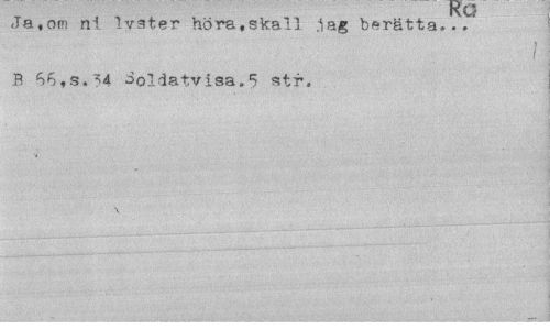 //// Ja, om ni 1väter höra .skall .lag berätta...' //// i //// i //// B 66,s.?4 Soldatvisa.5 str. //// \ ////
