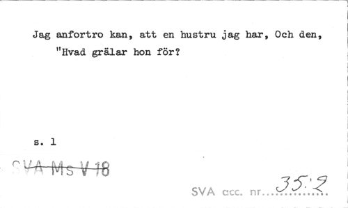 //// Jag anfortro kan, att en hustru jag har, Och den, "Hvad grälar hon för? //// s. 1 //// SVA ccc. ////