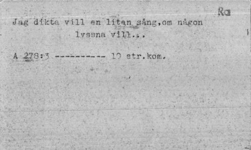 //// . * | • JH | fgg| Ra //// Jag dikta vill en litan sång,om någon //// lyssna vill.. . * //// A 278:3 --- 10 str.kom. //// t ////