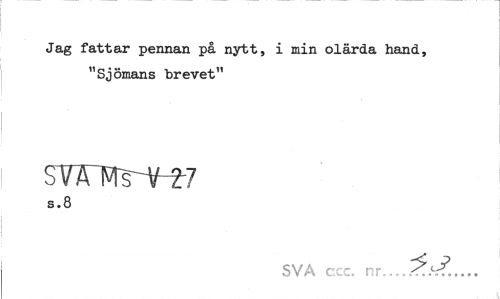 //// Jag fattar pennan på nytt, i min olärda hand, "Sjömans brevet" //// SVFMr-V-2-7 //// s.8 //// SVA ccc. nr... ////