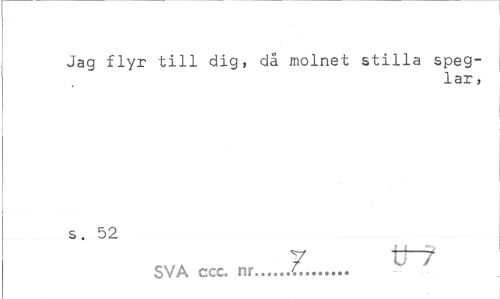 //// Jag flyr till dig, då molnet stilla speglar, //// s. 52 //// 7 tt"? SVA ccc. nr... ////