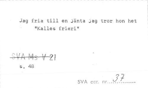 //// Jag fria till en jänta jag tror hon het "Kalles frieri" //// s. 48 //// i? //// SVA ccc. nr...V/..:... ////