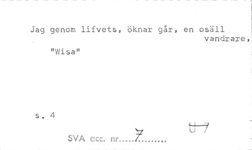 //// Jag genom lifvets, Öknar gar, en osäll //// vandrare, //// "Wisa" s. 4 //// y tn //// SVA ccc. nr...</... ////