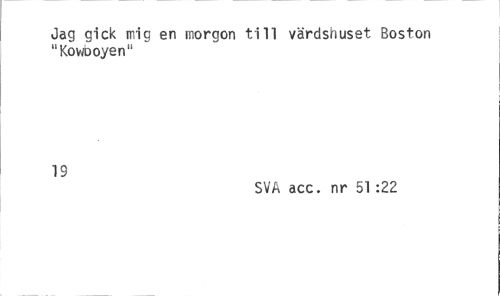 //// Jag gick mig en morgon till värdsnuset Boston "Kowöoyen" //// 19 //// SVA acc. nr 51 :22 ////