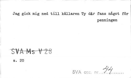 //// Jag gick mig ned till källaren Ty där fans något för //// penningen //// s. 20 //// SVA ccc. nr...'»^/?... ////