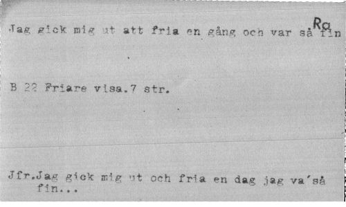 //// Ra //// •Tag gick mig xt att fria en gång ocn var så fin B 2< Friare visa.7 str. //// Jfr. Jag gick n ig »>t och fria en dag -ja* va'så fin... ////