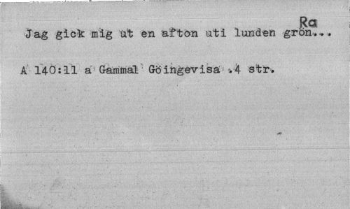 //// Ra //// Jag gick mig ut en afton uti lunden grön... A 140:11 a Gammal Göingevisä -.4 str. ////