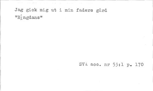 //// Jag gick mig ut i min faders gård "Ringdans" //// SVA acc. nr 53 il p. 170 ////