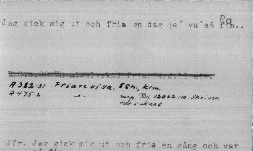 //// Jag gick mig och fr'a ?n dag ja' va'sa .. 0 3 tz 3/ * Sta. re, f //// <9 y ys~ 2, - 'hon . 'o . //// Jfr- Jag gick m" r. <;t .->oh fr'a en gång och var ////