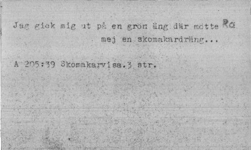 //// Jag gick mig ut på en grön ang där mette //// . mej en skornakardräng... //// A 205:39 Skomakar/i sa. "5 st t. //// I < 'v -¦'¦-. ^'•¦¦l'-:; ; !v. • ' //// [" •.-..." ; ¦' - ¦ -". >"¦? ¦ "s ;.-/i ,. :-¦'- : 1 ¦-. -i • ¦ ¦ : < •' " * . . _ . * - • //// : /.'-.¦ ¦ ' '"..--' ; "i " - . ' //// : . . . , r ' ^ ' - . f //// I ¦' S¦ ' * t ¦ : :" v' . -' r ' ' ¦?1 ; .* ¦ ' - - v ////