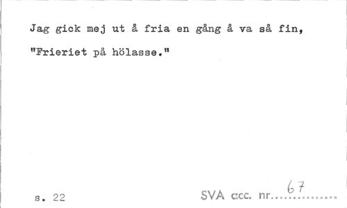 //// Jag gick mej ut å fria en gång å va så fin, "Frieriet på hölasse." //// s. 22 SVA ccc. nr...!?.?... ////