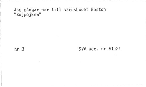//// Jag gångar ner till värdshuset Boston //// "Kojpojken" //// nr 3 SVA acc. nr 51:21 //// ¦ ////