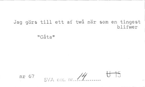 //// Jag görs till ett af twå nar som en tingest //// blifwer //// "Gåta" //// nr 67 /<f tHj //// SVA c :c. nr..r. i ... ////