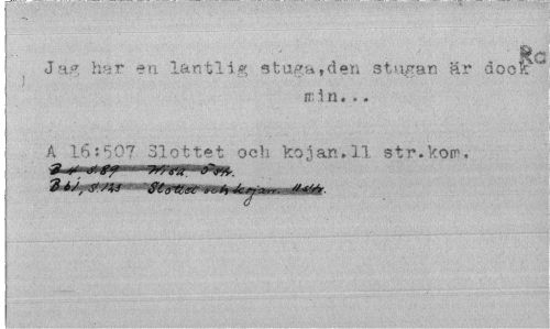 //// ' //// jHj v-;r en lantlig stuga,den stugan är dock "" //// ir, \ n... //// A 16:507 Slottet och kojan.11 str.kom. ////