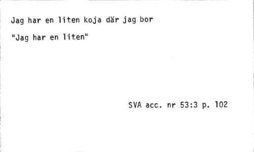 //// Jag har en liten koja där jag bor //// "Jag har en liten" //// SVA acc. nr 53:3 p. 102 ////