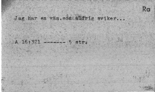//// Ra //// Jag har en vän,soa aldrig sviker... //// ily tMM-f få IläSIS III t //// A 16:321 ---5 str< //// !''.:'• ' v. ' ».. - //// "''"'¦. "¦"¦: T . - //// , v v ¦ ' " v *. ' ' '* -¦ .'» :•„• ¦/'"" ' .'. '.,» ' - '." ':. ' ' . * .v ' Jf //// | , - * * - , . , - v ' ¦ , l^.-if , ' * ¦ ¦- '••¦ •' ' . , //// • • v - . ; ^ jl * ^ ¦ />¦';' ¦• //// I./ ' ' SÄ ////