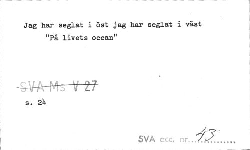 //// Jag har seglat i öst jag har seglat i väst "På livets ocean" //// s. 2k //// SVA ccc. nr //// fä ////