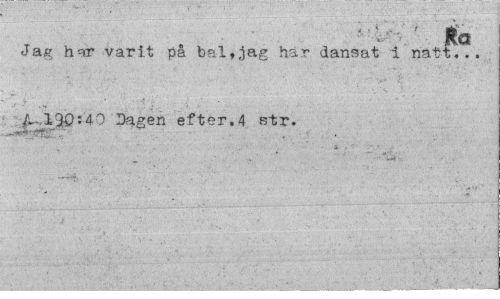 //// • ' iéq //// Jag har varit på bal,jag har dansat i natt... L 130:40 Dagen efter.4 str. ////