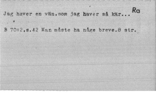 //// I //// f?«~t //// Jag haver en vän,som ,iag haver så kär... » //// B 70:2,3.42 Kan måste ha någe breve.8 str. ////