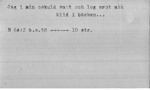 //// Jag i min oskuld satt och log eirot min //// blid i bäcken... //// B 64:2 b, s.58---— 10 str, ////