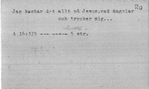 //// J //// Ja*r kastar d-t allt ra Jesus»vad ängslar //// och trycker mig... //// A 16:325---5 str. ////