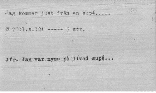 //// Jag kommer just frän cn sup*... //// B 71:7,s. 104---? str. //// Jfr. Jag var nysa på livad supé<«. ////