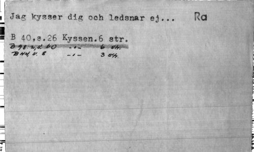 //// i Jag kysser dig och ledsnar ej... Ra ! B 40,3.26 Kyssen.6 str. //// S *">( **. * - ' - 3 //// — //// JU—--- —--- ////