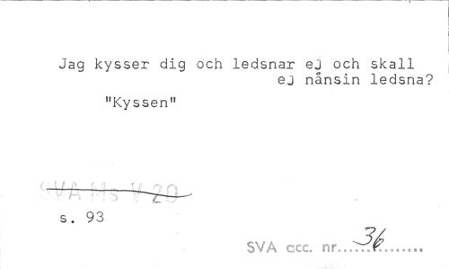 //// Jag kysser dig och ledsnar ej och skall //// ej nånsin ledsna? //// "Kyssen" //// ( \//* [fp n v ^ - • ^zr-^ //// s. 93 //// SVA ccc. ... ////