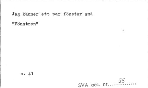 //// Jag känner ett par fönster små "Fönstren" //// s. 41 //// 55 //// SVA acc. nr... ////
