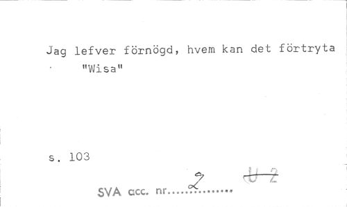 //// Jag lefver förnögd, hvem kan det förtryta "Wisa" //// s. 103 //// SVA ccc. nr...v... ////