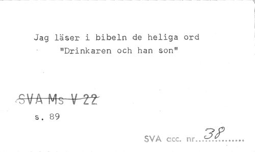 //// Jag läser i bibeln de heliga ord "Drinkaren och han son" //// s. 89 //// SVA ccc. nr...v... ////