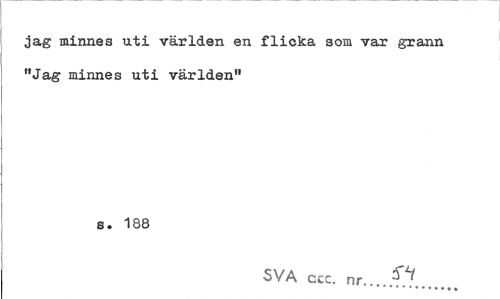 //// jag minnes uti världen en flicka som var grann "Jag minnes uti världen" //// s. 188 //// SVA ccc. nr...v... ////
