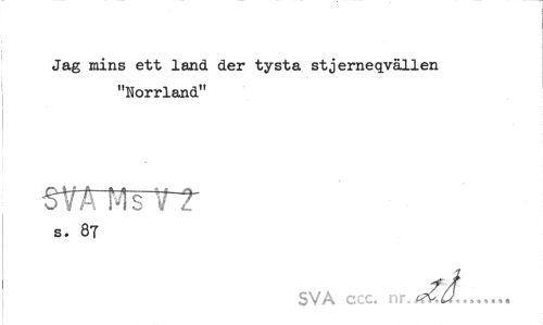 //// Jag mins ett land der tysta stjerneqvällen "Norrland" //// SVA Ms TT //// s. 87 //// SVA ccc. nr. jå... ////