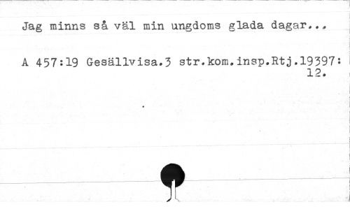 //// Jag minns så val min ungdoms glada dagar,., //// A 457:19 Gesällvisa.3 str.kom.insp.Rtj.19397: //// 12. //// *--- ////
