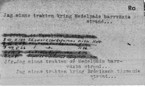 //// Ro //// Jag minns trakten kring Medelpads barrväxta //// strand... //// 3 s". /#<? SAqwe.rSc SAo^-é ri-K-s i*-1 s-a.. Msty. //// ir.ru nww nii tru»» ^n, ... ** • //// •y v? sf t- ' //s*- //// J f r. j ag ^nr^t^^tenä^^Tefoåd s barr- //// växta strand.. . Jaf minns trakten kring Bråvikens t fasande //// strand... ////