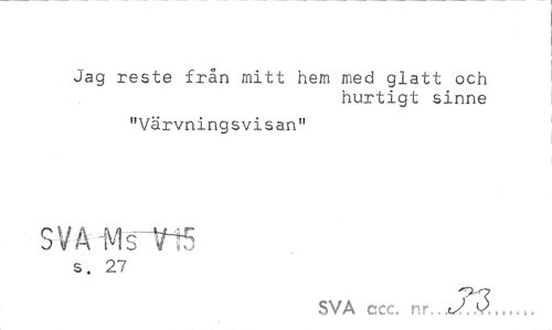 //// Jag reste från mitt hem med glatt och //// hurtigt sinne //// "Värvningsvisan" //// SVA -MrY15 //// s. 27 //// SVA ccc. nr. ... ////