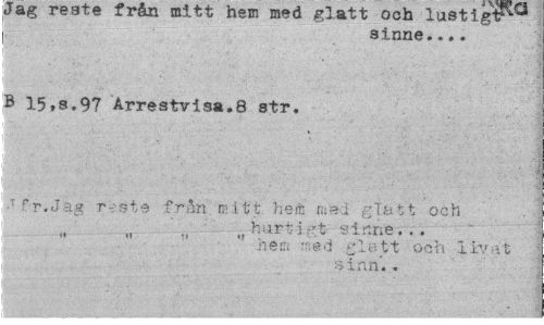 //// Jag reste från mitt hem med glatt och lustigt"*5"** //// sinne... //// B 15»s.97 Arrestvisa.8 str. //// ¦T fr.Jäg r~ste från .mitt hem rned ' glatt och //// hur ti,--t sinne... //// II tt !t <1 . , , , , //// ne si -ned tt ocn xivat ( sinn.. ////