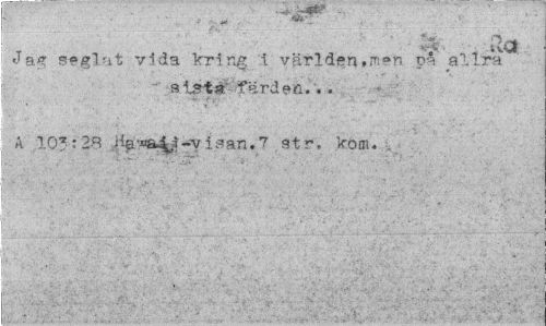 //// hsmf* 5 1 • ' //// tid //// Ju seglat vida kring i världen,m-n p* allra alatå'- färden. .. //// A 28 -v isan.7 .str, . kom. ////