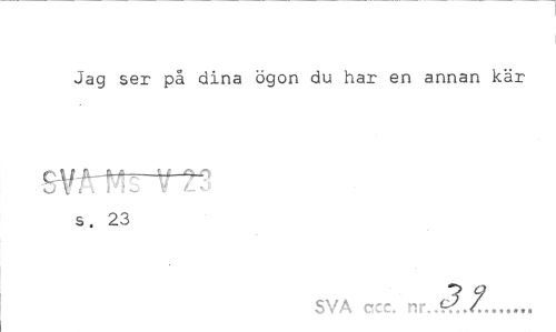 //// Jag ser pa dina ögon du har en annan kär //// SVA-Ms V 23 //// s. 23 //// SVA ccc. nr. C?/... ////