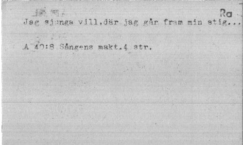 //// ivQ • //// Jag sjunga vill,där jag går fram min stig... //// .A '40:8 Sångens makt,4 str, //// - 1 //// - ////