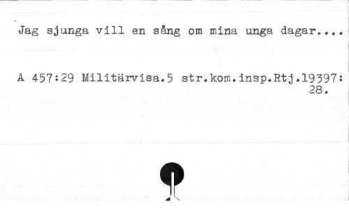 //// Jag sjunga vill en sång om mina unga dagar... //// A 457:29 Militärvisa.5 str.kom.insp.Rtj.19397: //// 28. //// 9 ////