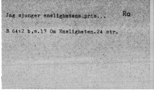 //// • • •• t :.••• .v • ' "V ' f ' ' * r> ""JC*" i-"'i //// Jag sjunger enslighetens pris... B 64:2 t),s.!7 Om Ensligheten.24 str. //// ! ' ' i > C' ¦ ' \ )t * f' .. - -fr ' V " ' //// l; ¦ I .. ¦"'•;,'':. ." .' f . ''¦' •„¦"•" •• -''•'-.' ¦ .x ¦ ! ' •• ''V* . • ' .-, . -...••¦ -. • -.. : " .. ,••• s //// r " . ¦ ' : ¦ • .-/,:' . '•' ; ' ¦¦'"" //// I . - • ' " : : //// il ////