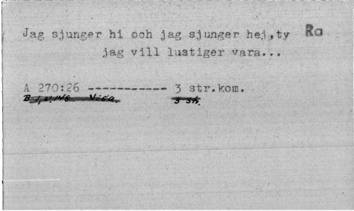 //// Jag sjunger hi och jag sjunger hej ,ty KG jag vill lustiger vara... //// A 270:26 ---3 str.kom. ////