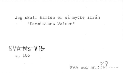 //// Jag skall hällsa er så mycke ifrån "Permisions Valsen" //// SVA Mrrtttfr //// s. 106 //// SVA ccc. nr, K,-K... ////