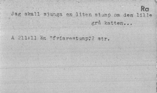 //// Jag skall sjunga en lit*r , ^° //// s j-icen stump om den lille //// grå katten... A 211:11 En »friare«tump?2 str. ////